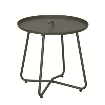 De Bijzettafel Reno Legergroen is een moderne compacte bijzettafel. Het stalen onderstel zorgt voor een stevige basis. Het zwarte tafelblad heeft een diameter van 51,8 cm en een hoogte van 50 cm. Eenvoudig te monteren.