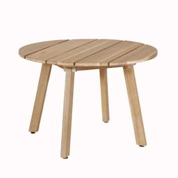 Deze bijzettafel Jura is een leuk, rond bijzettafeltje met 4 authentieke poten, een hoogte van 40 centimeter en een diameter van 60 centimeter. De bijzettafel is gemaakt uit reeds geolied hardhout en past zowel in je interieur als je exterieur. Leuk naast je favoriete tuinbank of tuinstoel … Ook verkrijgbaar in een hoger model met diameter 45 cm. Tip: het houten tafeltje kan tegen een stootje, maar blijft langer schoon als je het tijdens slecht weer afdekt.