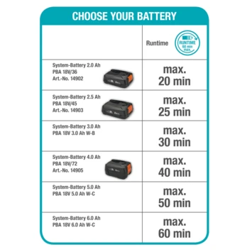 - Binnen het juiste accu platform zijn de accu’s universeel uitwisselbaar. Hierdoor is het Plug & Play tussen al het gereedschap en tuingereedschap van hetzelfde merk en uiterst gebruiksvriendelijk
